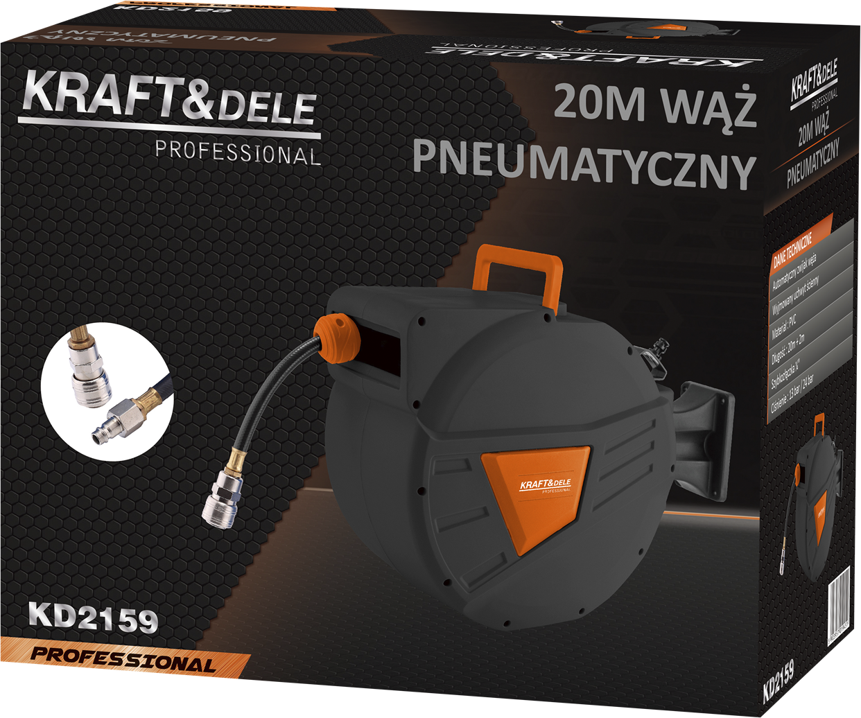 KD2159 — это практичный пневматический шланг марки KRAFT&DELE, размещенный на автоматическом барабане, предназначенный для работы со сжатым воздухом. Это необходимое оборудование для каждой мастерской, сервиса, гаража или производственного предприятия, где важны порядок, удобство и надежность пневматической установки.