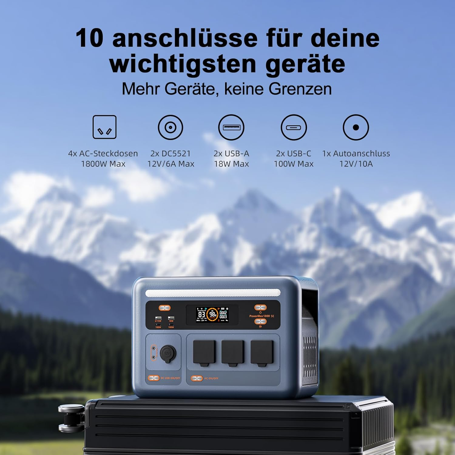 DC5521 , USB Type-A , USB Type-C , Розетка 220 В , Прикуриватель 12 В , Беспроводная зарядка |