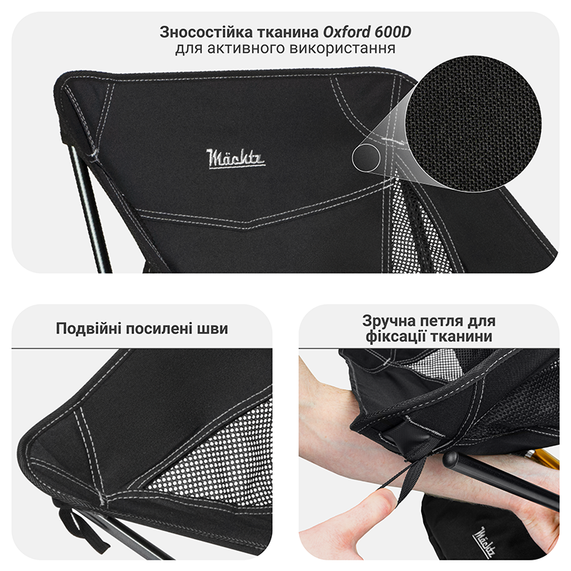 Высококачественный материал сиденья OXFORD D600 устойчив к износу и гарантирует долгий срок службы кресла на протяжении многих туристических сезонов.