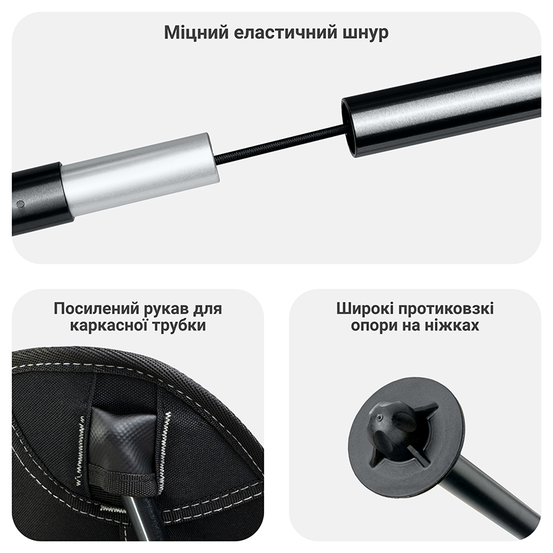 Технология мгновенной сборки обеспечивает удобное место для сидения и значительно экономит время при обустройстве места для отдыха на природе.