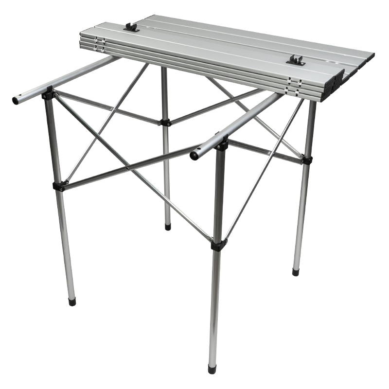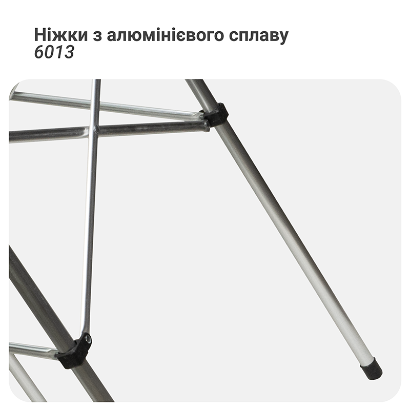 Усиленный каркас обеспечивает устойчивость стола на песке или траве, что позволяет безопасно размещать на нем тяжелую посуду.